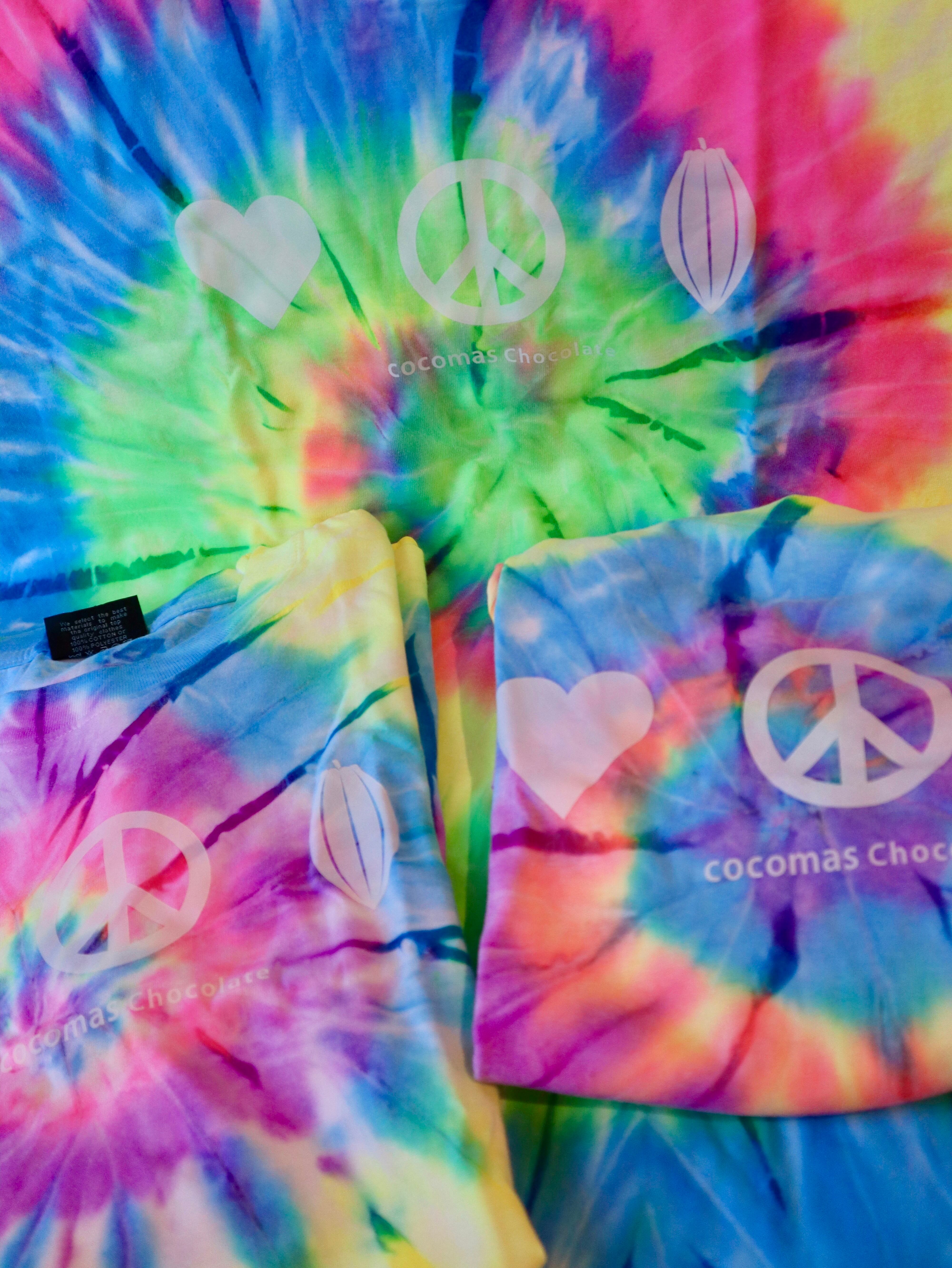 (カカオの産地であるフィリピンのお店でTシャツを購入して、プリント屋さんに持ち込んで作ったものです。染めムラやプリント位置のずれなどがざいますので、もし気になる方はご購入をお控えください。)
